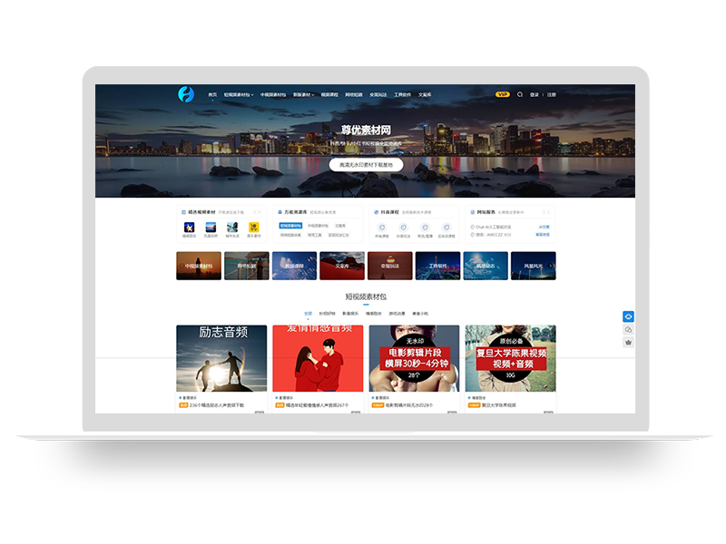 主要包括情感励志短视频素材,生活小妙招,美食,影视MV,健康养生,好物种草,心理学,风景航拍等30个多分类。